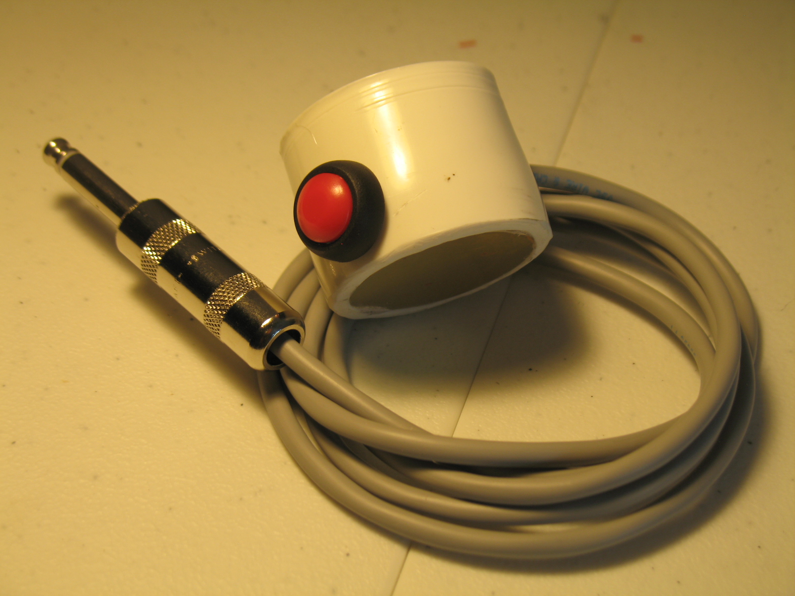 The Silo Jack Sperm Edition is one of my burliest contact microphones, well-suited for heavier scrubbing, aggravating shrub work, and feedback worship. Here's the deal: the piezo element is fitted into a slice of PVC tubing and mounted solid with silicone. There's even a red-button kill switch if you want to get glitchy. On top of that, the SE is terminated to a four foot audio cable and 1/4 inch male guitar input*; it's ready to plug in and play.