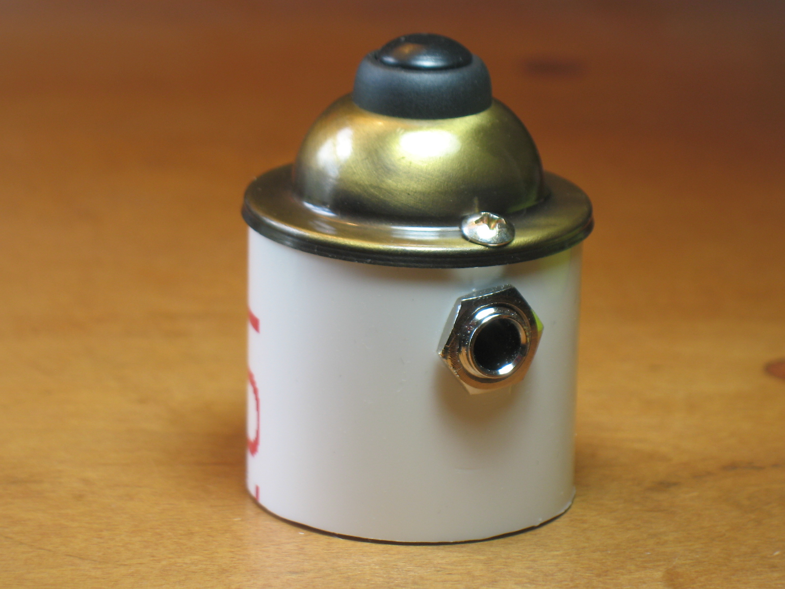 The Odd Knob is one dandy little brute. Like its longer sibling, the Silo Jack SE, the Odd Knob is encased in PVC but with a twist: it's topped with a fancy doorbell switch, enabling you to glitch, bonk, and thwack to your heart's content. Like my other jack-style contact microphones, this one is terminated to a 1/4 inch female input, allowing you can run any length guitar cable...
