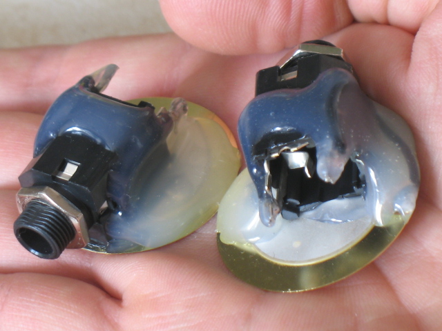 The Plug Ugly is terminated to a female 1/4 inch jack, allowing one to use any length guitar cable. Best of all, the PU is designed to withstand not only the demands of aggressive playing and performing, but also resists the daily wear-and-tear of being a klutz. A hefty cake of silicone is fastened to the mic AND the jack, so that pressure and vibrations are absorbed throughout the body, and not the piezo element. The result is a contact mic that is extremely durable.